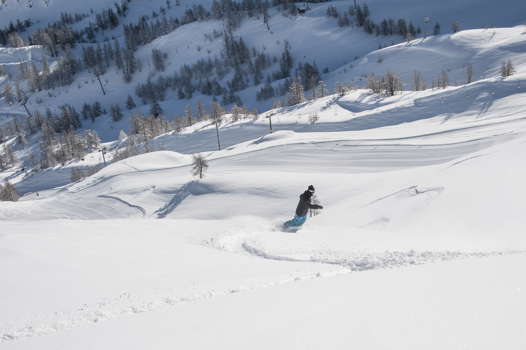 Most of the runs in the valley are blues and reds, and some of them are quite wide, so there is some great cruising to be done on a snowboard, with lots of fun features and side-hits as well. Some of the runs come down through the larch forests, but 80% of the skiing is above 2000m, so a lack of snow is not usually an issue. For any snowboarders feeling a bit more adventurous, there is a snowpark above Chantemerle, which has a range of kickers from very small to very large, and there is also some easily accessible off-piste throughout the valley. Pierre Vaultier also put the resort on the map recently by filming his famous Red Bull snowboard runs here.