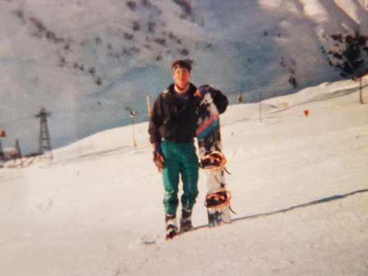 I was lucky enough to have started snowboarding when I was still very young, back in 1989, when I was only 14. I was keen on skateboarding at that age and had witnessed the occasional snowboarder riding around whilst on ski trips with my family, and having already been skiing for around 5 years by that point I desperately wanted to try what looked like great fun sliding sideways on snow. I convinced my parents to let me rent a snowboard for a couple of days on our family ski trip to Argentiere that year, but back then the rental snowboards were shaped like ironing boards and had clips on them that you could fasten your ski boots too, so it wasn’t the easiest of learning experiences, but I was already hooked.
