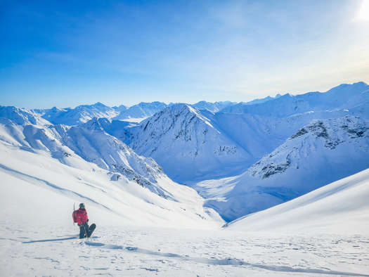 Operating in Alaska's Chugach and Talkeetna mountain ranges, with over 2 million acres (approximately 8,100 km²) of diverse alpine terrain, skiers and snowboarders can explore pristine bowls, spines, ramps, couloirs, and expansive glacier runs. The skiable elevation ranges from 2,500 feet (762 metres) to 10,000 feet (3,048 metres), offering a variety of runs suitable for different skill levels.