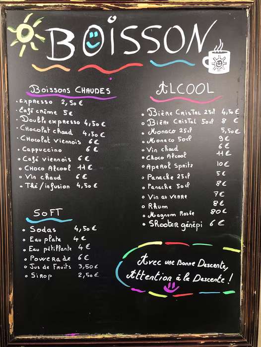 The menu is tailored to skiers, offering a mix of hearty French mountain cuisine and casual favourites. You’ll find dishes like tartiflette, burgers and pasta, alongside soups and salads for lighter appetites. The snack menu features sandwiches, crêpes and hot drinks, perfect for that quick stop. Prices are skier-friendly, with mains typically ranging from €15 to €30, making it accessible for most budgets, as well as offering Poke bowls for those looking to ease off on the cheese for a day!