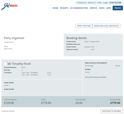 We try to make life as easy as possible for our party leaders, as we know how challenging it can be to organise a group ski trip.  Our online booking portal allows each guest to enter their own personal information, make payments and book extras (such as lift passes and equipment rental), which removes a lot of the administration that previously would have been carried out via emails and phone calls.